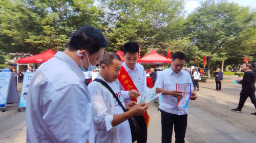 郑俊杰为过往群众普及宪法知识。林愈静摄