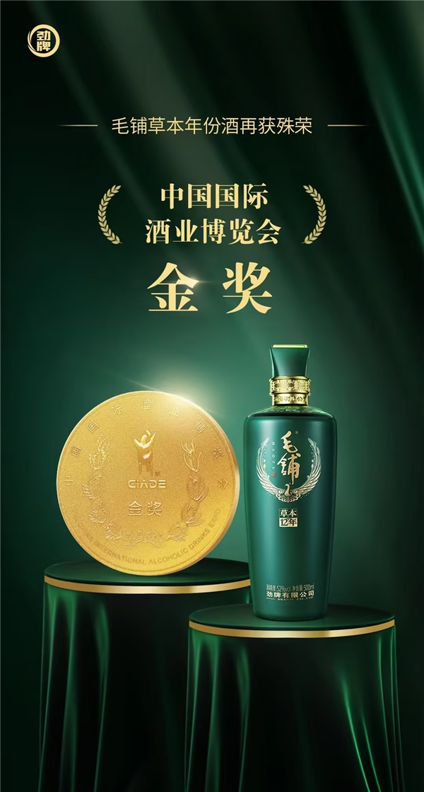 10月12日,在第十九届中国国际酒业博览会上,劲牌养生一号、毛铺草本年份酒12年双双获得“金奖”。