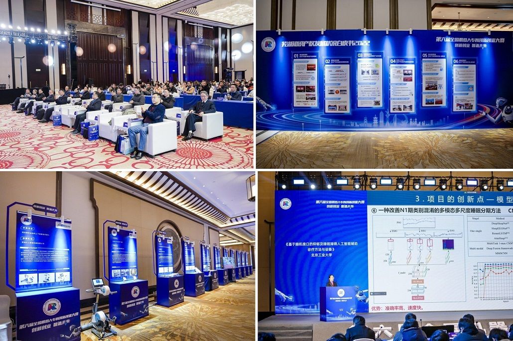 决赛由相关领域技术专家、知识产权专家、管理专家组成专家评审委员会。经专家评审委员会合议审定,最终“基于脑机接口的抑郁及睡眠障碍人工智能辅助诊疗方法与设备”项目摘得本次大赛特等奖桂冠。大赛还角逐产生了一等奖4名、二等奖10名、三等奖20名、优秀奖5名,现场公布了大众评审投票产生的三项最具人气奖项目。同时,为感谢一直以来给予支持的单位,大赛颁发了第六届全国机器人专利创新创业大赛组织奖,获奖单位为京津冀高校知识产权运用联盟、安徽省机器人产业知识产权联盟和北京市朝阳区集成电路产业知识产权运营中心。