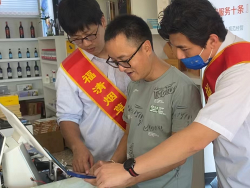 福清市局(分公司)工作人员常态化上门服务,指导三毛商行使用手机软件开展门店管理。余麟丰供图