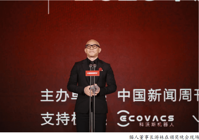 12月15日,《中国新闻周刊》2023“年度影响力人物”在京揭晓,猫人集团创始人游林与诺贝尔文学奖获得者莫言、篮球运动员易建联、演员费翔、中国人民大学副校长、法学教授王轶,中国中车集团有限公司党委书记、董事长孙永才,华润啤酒董事会主席侯孝海、量子之歌创始人李鹏等来自不同行业的精英,一同获奖。