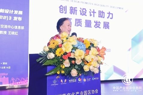 成果发布环节,中国国际经济交流中心高级研究员、创新设计蓝皮书主编王晓红在现场发布《中国创新设计发展报告(2022)》,报告由南方科技大学全球城市文明典范研究院、广东省文化经济发展研究会、深圳市国元文化产业研究院联合编写,系统展示了新兴产业领域的创新设计进展、欧美国家创新设计发展趋势和设计政策、北上广深以及香港等主要城市创新设计发展情况。