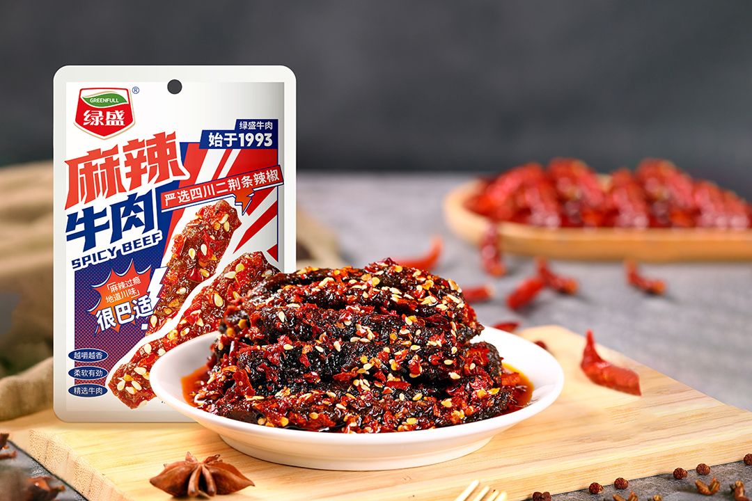今年,绿盛牛肉更是从健康品质角度出发,研发了多款在原料、配方、匠艺等方面有所创新的产品。上架李佳琦直播间的绿盛麻辣牛肉,便是新品中的热销代表,一经上市好评无数。这款麻辣牛肉甄选优质牛肉,细致修整、剔除筋膜,佐以纯正四川二荆条辣椒,再通过多道工序制作而成,每一根牛肉干都饱满入味,肉质鲜美。