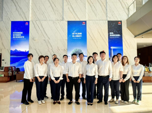 图为:参观华为武汉研究所