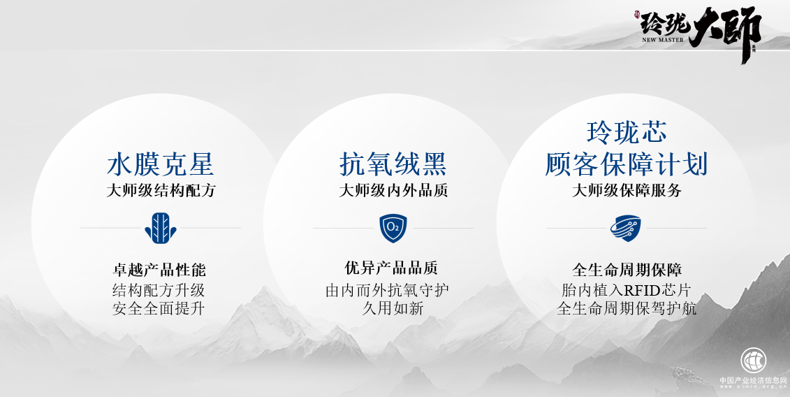 此次发布的新品以大师致控、大师致静、大师致享为产品矩阵,是面向中高端轮胎车主、兼具高性能与高品质的轮胎产品,全系通配水膜克星、抗氧绒黑、玲珑芯顾客保障计划三大提升,为用户提供极致安驾守护。