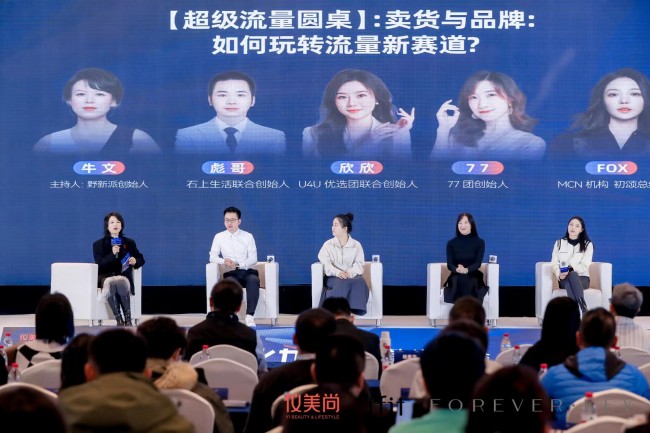 社交电商平台石上生活联合创始人彪哥、快团团美妆个护TOP1团长U4U优选团联合创始人欣欣、群接龙TOP1团长77团创始人77、知名MCN机构初颂总经理Fox,则与野新派创始人牛文一起分享了线上公、私域流量新赛道的新玩法。