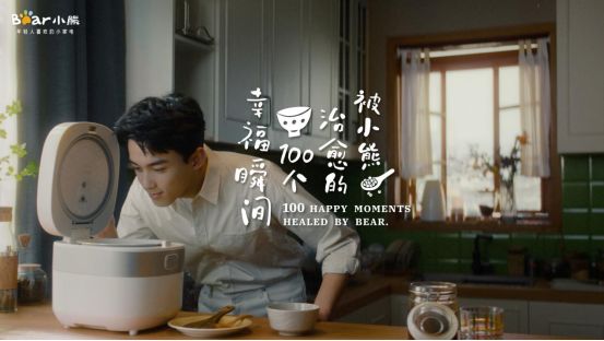 比如由代言人吴磊演绎的《被小熊治愈的100个幸福瞬间》TVC,小熊电器就深入办公、宅家、社交等生活语境,为年轻人带来情绪治愈。正如片中所表达,也许繁杂的工作让人焦头烂额,也许手机里不断蹦出的信息让心不得安宁,但当看到小熊电器养生壶“咕噜咕噜”炖煮的那一刻,捧起一杯矿物质即饮热水的那一刻,杂粮电饭煲把饭煮好提示声响起那一刻,一切烦恼皆会抚平,生活总是充满暖暖的治愈感。