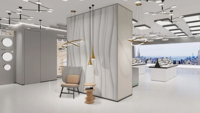 而4.0旗舰店最核心的变化,是增加多品类场景化的体验,让消费者感知公牛的产品如何应用到家庭装修。譬如,门店内集成展示的墙壁开关、爱眼照明、智控无主灯、生活电器、轨道插、台灯与智能门锁七大品类,基本覆盖公牛全屋安全用电解决方案。又譬如,店内的灯饰展示套间和无主灯体验套间,通过智能开关联动,增强了消费者多品类使用的场景体验。