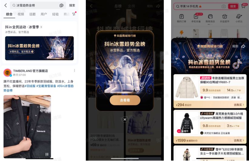当用户在抖音商城浏览或搜索商品时,“抖in冰雪趋势金榜”作为一个新的种草触点,能够帮助用户加速决策,缩短转化路径。这个触点的出现丰富了电商榜单的维度,也让“榜单营销”的价值更加凸显。