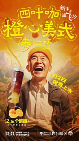 四叶咖同时宣布,将送出10000杯“橙心美式”,与大家分享来自新年的第一份幸运,希冀消费者在2024年美事“橙”真。