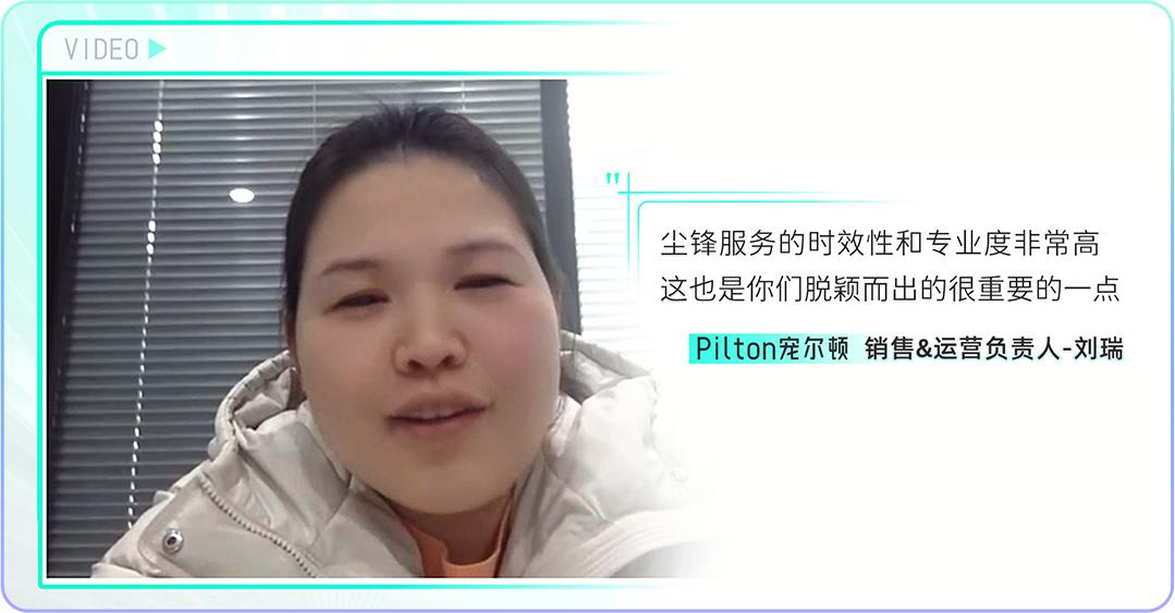 Pilton宠尔顿的销售&运营负责人刘瑞表示:“尘锋服务的时效性和专业度非常高,这也是你们脱颖而出的很重要的一点”。