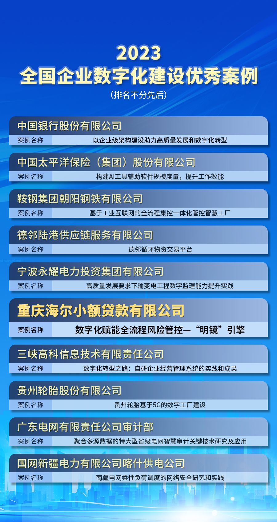 近日,“第二十届中国企业发展论坛·2023中国企业数字化发展大会暨优秀案例发布”活动在京举办。本次大会发布了“2023全国企业数字化建设优秀案例”,重庆海尔小额贷款有限公司(以下简称“海尔云贷”)凭借其创新的“数字化赋能全流程风险管控——‘明镜’引擎”案例,成功入选2023全国企业数字化建设优秀案例。