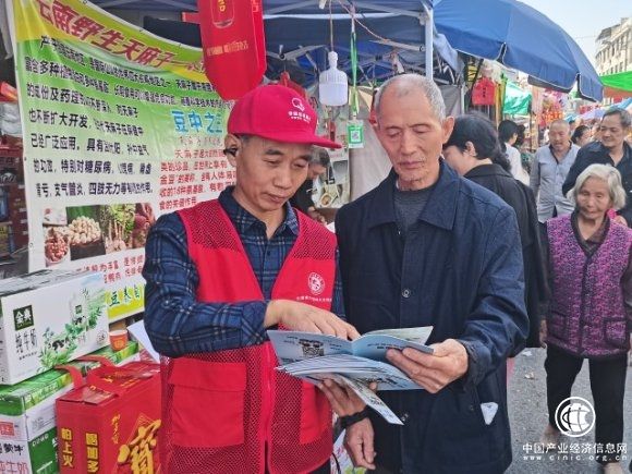 图为兰溪市烟草专卖局志愿者向群众宣传电信网络诈骗防范攻略
