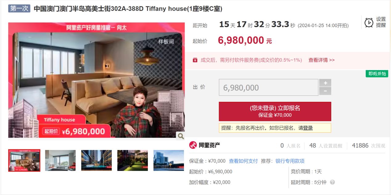 据了解,Tiffany house共有三套房源上架阿里资产,全部8折起拍,将于1月25日开拍。本次直播向太带大家沉浸式感受Tiffany house关于户型、装修配置、周边配套、价格、背后的故事等的细节。