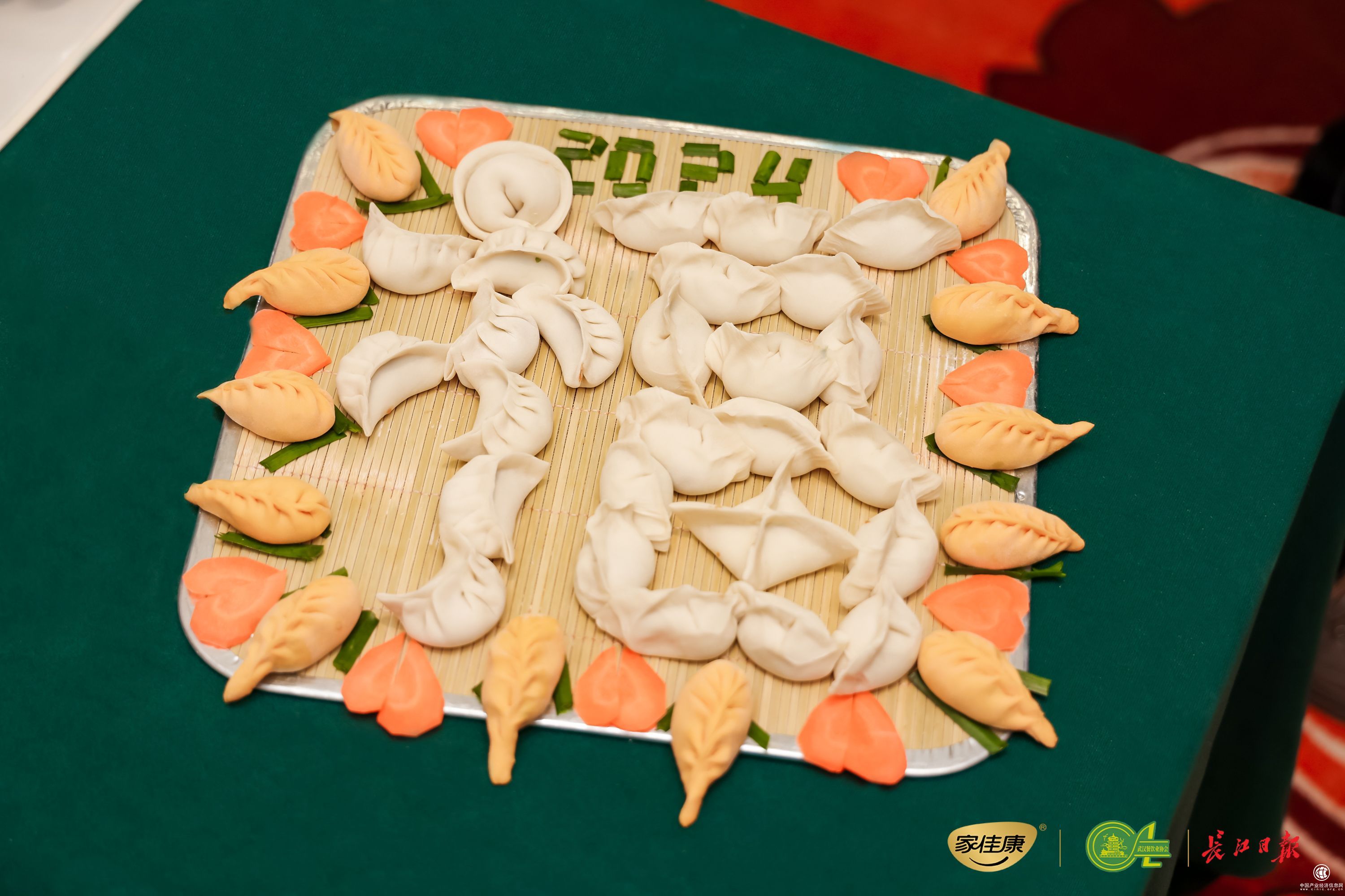 现场还展示了大师们提前精心定制的十款创意饺子,枫叶饺、梅花饺、龙饺子、鱼饺子、冠顶饺、状元饺等形态各异美轮美奂,“诸(猪)事顺意”“喜上梅梢”“珠(猪)圆玉润”等作品名称赋予饺子吉祥寓意,“龙腾盛世”“鱼跃龙门”等作品的摆盘造型更是惊艳四座。烹饪大师的加持让比赛氛围更加火热,选手们也深受启发,积极调整自己饺子作品的质量。