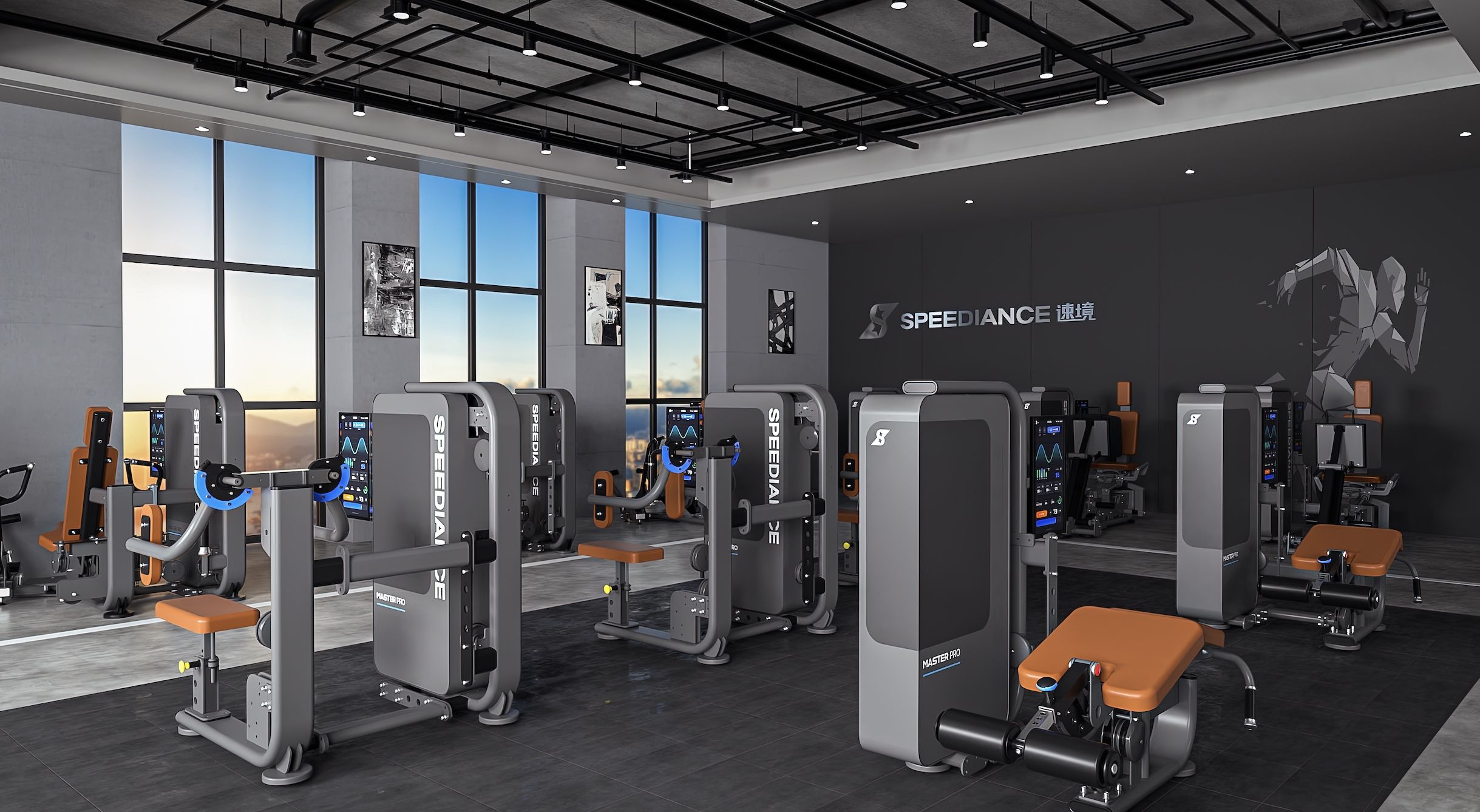 在商用训练器材方面,速境以健身房力量区大型固定器械为原型,研发出供健身房使用的数字力量健身设备:「商用大师系列」及「商用宗师系列」产品,让每个器械都专注服务一个训练部位。