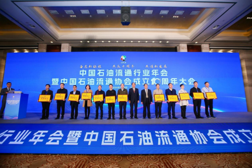 中国石油流通协会会长邸建凯作了题为《打造一流行业协会 精准服务石油流通——为推进石油流通行业高质量发展而努力奋斗》的工作报告。大会隆重庆祝了中国石油流通协会成立十周年,表彰十年来为石油流通行业和协会做出突出贡献的单位、个人,奖项分别是中国石油流通协会成立十周年突出贡献企业、突出贡献个人、优秀协会、优秀商会、优秀专家、优秀联络员。中国石油流通协会会长邸建凯、商务部流通业发展司原司长郑文为获奖单位及个人颁奖。