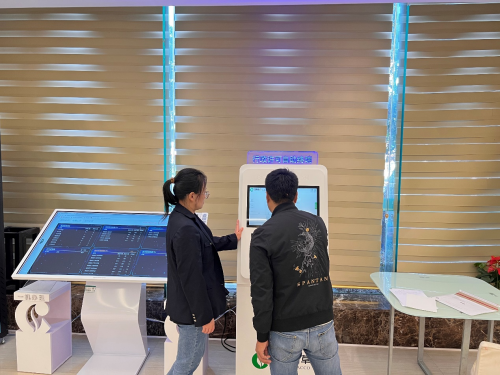 图为行政大厅引导员引导零售客户使用行政许可自助终端。温琳荔供图