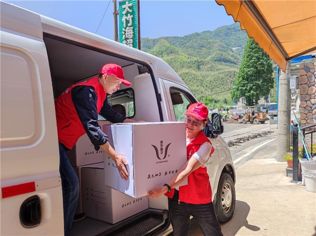 图为安吉县烟草专卖局青年党员联合送货工作人员在安吉返程物流站点,为溪龙白茶提供免费捎带服务。张阿岚摄