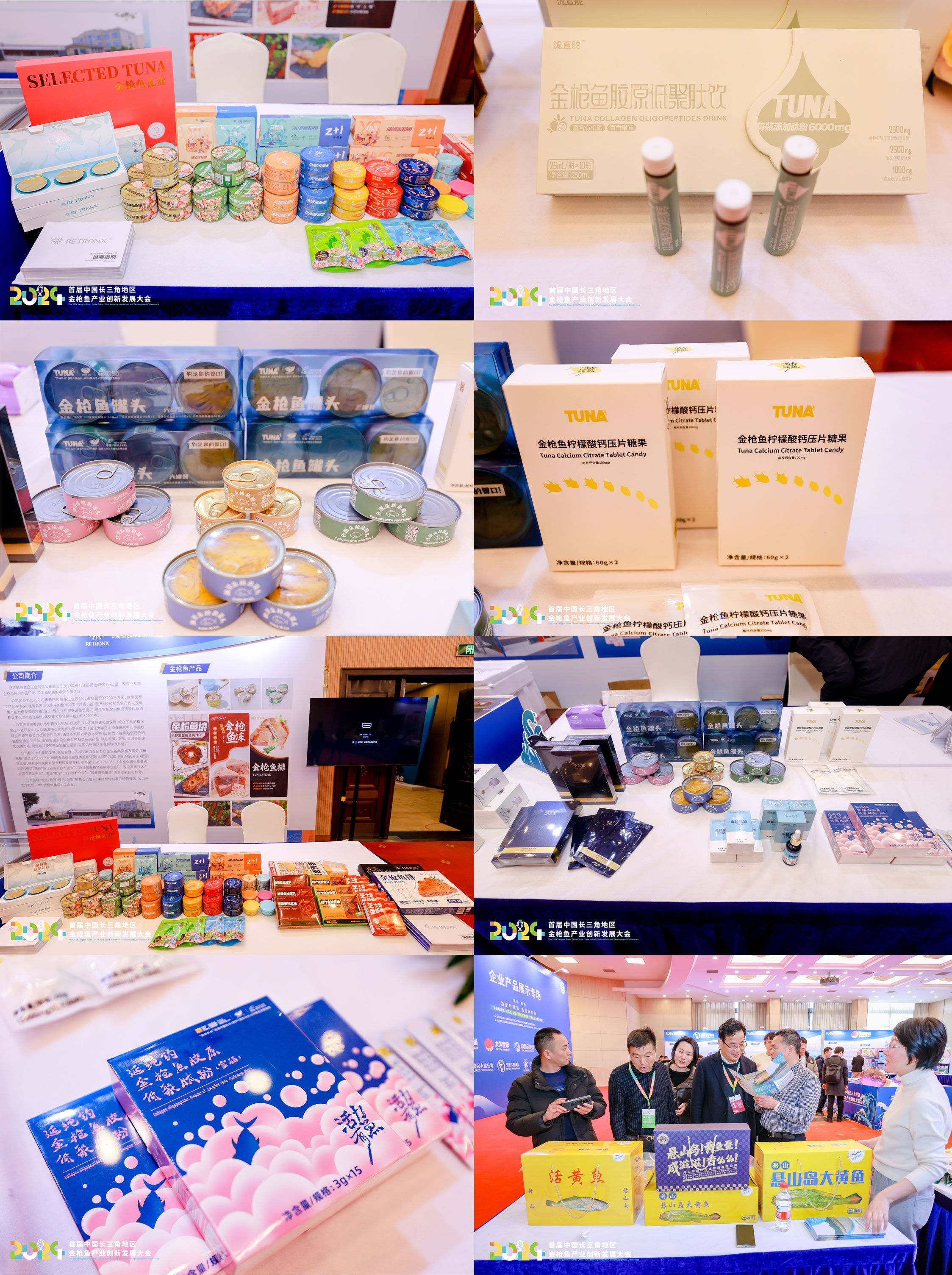 大会期间,浙江省远洋渔业协会以及平太荣集团、大洋世家、中鲁远洋、中水股份、上海开创、岱山环太食品、宁波今日、浙江融创食品、大连翔祥八家国内金枪鱼综合利用头部企业还设摊进行产品展示,涵盖远洋自捕金枪鱼各品类食物,传统刺身冻品以及金枪鱼丸、金枪鱼罐头、金枪鱼排、金枪鱼肠、金枪鱼饺子、金枪鱼酱等新开发预制菜新品和金枪鱼蛋白肽、鱼油、金枪鱼复合血、金枪鱼多元糖精、金枪鱼面膜、鲣露等生物制品,平太荣集团新近合作开发金枪鱼肽啤酒和胶原蛋白低聚肽饮首次秀闪亮登场。