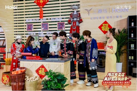 此次来到钟灵毓秀、物产丰美的湖南,海尔专卖店携手美好生活体验官“十个勤天”、新农人代表等,不仅带来了独具年味的寻三省湘西腊肉、长沙火宫殿酱板鸭和臭豆腐、晋丰厚安化黑茶等特色好物,还呈现了金彩霞湘绣、叶氏土家织锦等传统文化,更通过搭载“黑科技”的海尔智慧家电激发特色美食原香、还原传统文化神采。用户在这场沉浸式新年直播中,从年味美食到过年家电都能一站购齐,更能不断解锁智慧美好新生活。正如海尔智家副总裁、中国区总经理徐萌所言:“我们将在直播间与湖南老乡一起共荐热辣年货、共守智慧美好生活、共迎农历新年的到来!”