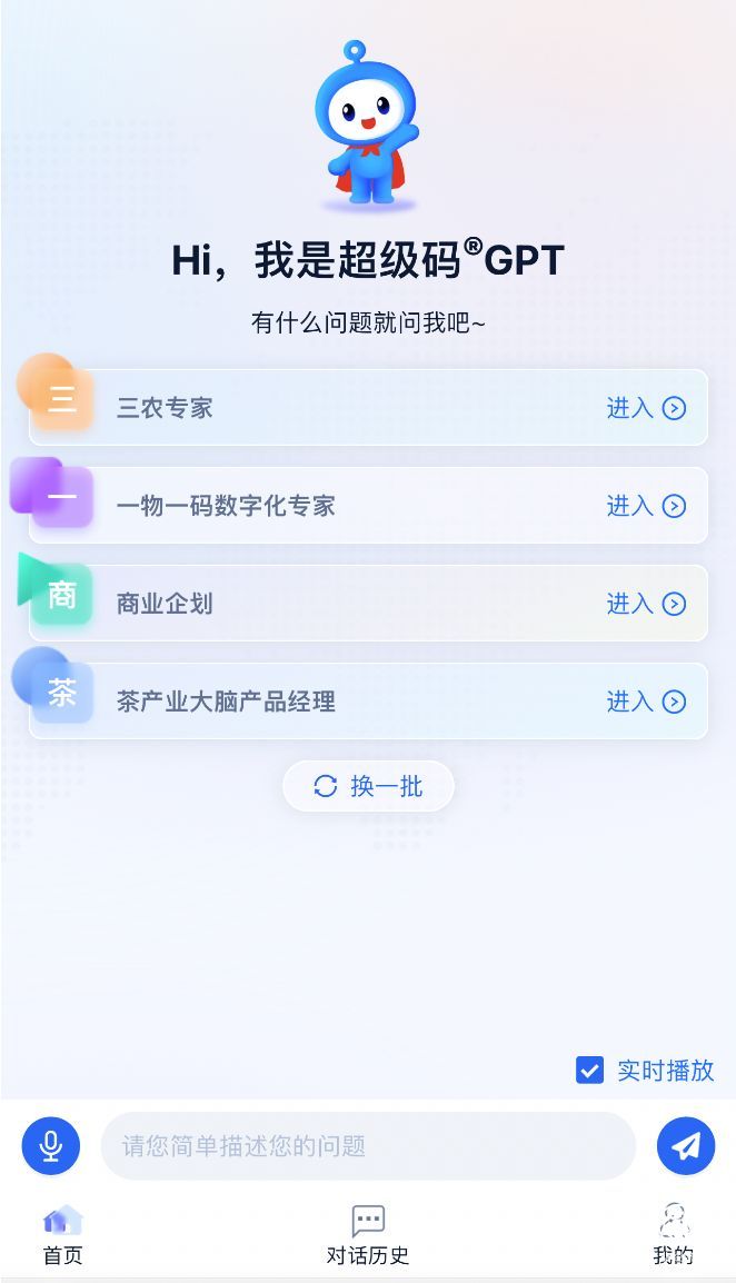 超级码合格证智能打印一体机集成超级码GPT智能语音对话产品。超级码科技股份基于大语言模型技术,针对农业和企业领域的特定需求,专注服务于农业从业者及企业管理者,在数据分析,决策支持,自动问答,客户服务,智能文案生成等方面都有着优异的表现,致力于打造您身边的专属智能顾问。