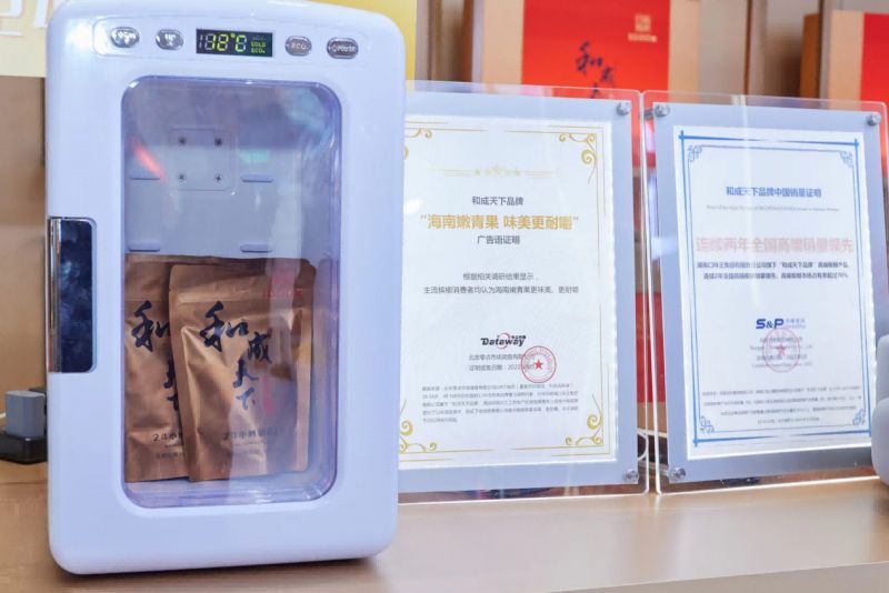 高端的品牌离不开高端的品质,和成天下国礼文化馆还特地还原了海南嫩青果林,全方位展示了海南嫩青果原产地风光。海南是全球槟榔黄金产区,生长的果子果形圆润、纤维嫩软、浆汁感足。和成天下100%优选海南早期嫩青果,经过层层筛选,再加上自主研发的青果精制工艺,才生产出浆汁感足,味美更耐嚼的和成天下高端槟榔。