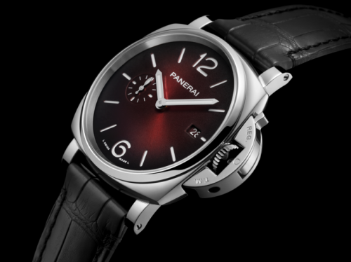 勃艮第红色调与鳄鱼皮表带的哑光黑色相得益彰,为腕表增添了时尚感。全新折叠表扣首次搭载于Luminor Due庐米诺杜尔系列42毫米表款中,可同时适配针扣及折叠扣表带,并配备沛纳海快速拆卸系统,可轻松更换表带,搭配不同造型。这一设计使腕表在时尚外观的同时,注重佩戴者的舒适感。