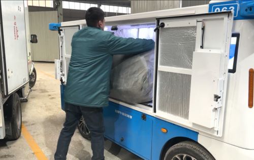 说着,留守站点的快递小哥已将200多件快递装进了白犀牛无人车里,十分钟后,准备进行今天的第四次配送,也是最后一次。