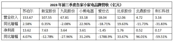 就看2023年,虽然整体市场进入冷静周期,小熊电器依然持续上扬:奥维云网数据显示,2023年1-9月,厨房小家电整体零售额同比下降9.6%,其中线上零售额同比下降9.9%,线下零售额同比下降8.9%;反观小熊电器2023年前三季度,公司营业收入、净利润分别同比增长22.96%和31.24%,实现刚需品类快速增长、新兴品类广泛增长。