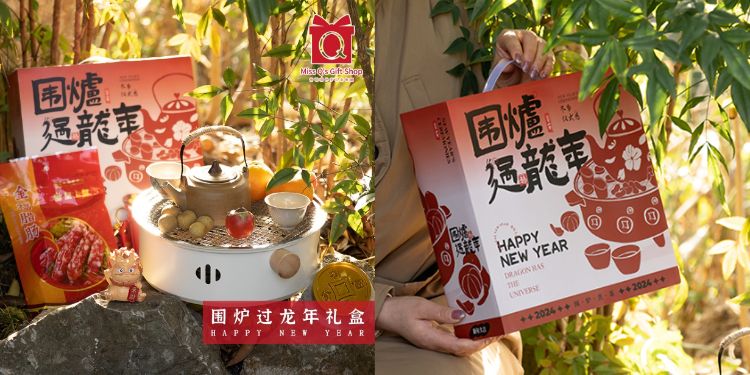 这款围炉过龙年茶具礼盒,虽然茶具设计上并未有鲜明的龙年特色,但包装和名称上特别凸显了“龙年”特色,并将应用场景具体化为一家人围炉夜话,一起品茶,吃着茶点,欢欢喜喜过龙年大年。