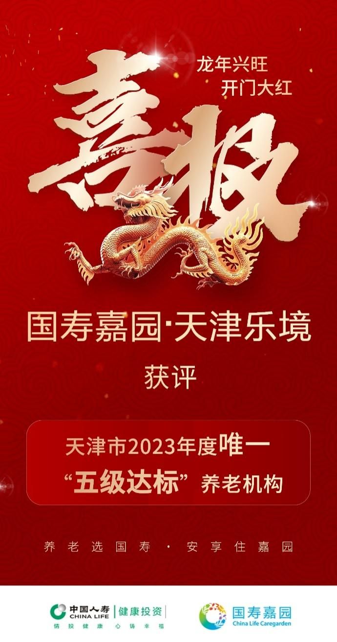 2024年2月2日,天津市民政局公布了《关于2023年度养老机构等级评定结果的通知》,国寿健投旗下医养结合型养老社区——国寿嘉园·天津乐境通过了500余项标准的专业评估,最终在60家养老机构中脱颖而出,成为唯一一家获评五级达标的养老机构。