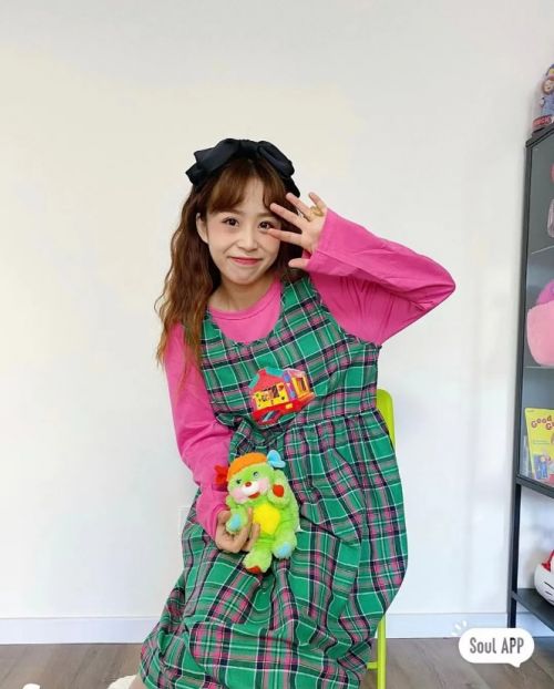 Souler@苏啊sua的穿着偏向于复古风和cityboy风格。黄绿色格子裙搭配上红色条纹袜,各自明艳却又不互相排斥。如果你问她这么特别的穿搭是如何构思的,运用到了哪些潮流美学?Souler@苏啊sua 会告诉你“多穿多尝试,舒适度就是答案啦。”