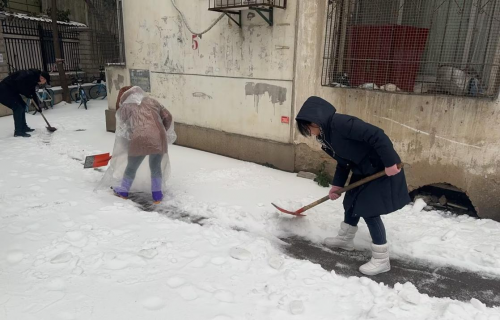 行动是最好的融雪剂。党员干部带头,纷纷投入到除雪一线,他们手中的铁锹和扫帚成为对抗冰雪最坚实的武器,每一个角落、每一寸路面,都留下了辛勤的汗水与坚定的足迹,不久就将积雪清扫干净,有力保障了辖区道路安全。