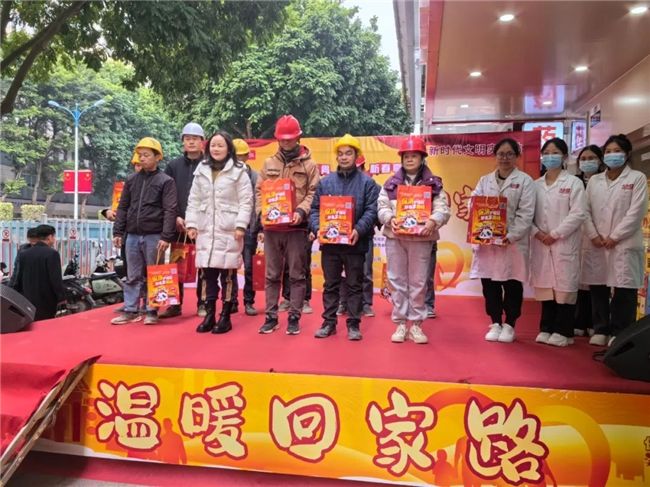 在现场社区居民和务工人员的共同见证下,一年一度的“温暖回家路—保济护肠胃,新春享美味”活动正式拉开序幕。接下来主办单位将走访全市各个春运驿站为旅客送上节日的祝福和问候。