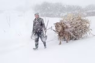 那个清晨,一片雪花偷吻了我的脸颊。我惊醒后发现,封闭严实的窗户全开了,尼龙膜被撕成几片长短不一的条形状,在鹅毛大雪的映衬下摇头摆尾;雪花乘机蜂涌而入,在我的床头肆意起舞。“堂屋有火烤,你起床把被子卷一下,等你父亲回家后再弄窗户!”母亲在査看窗户时对我说。入冬以来,每天早上母亲都会在堂屋的地上生一堆火,保证我们兄弟姐妹起床后取暖。母亲生火用的松树根,都是父亲从山上挖回来的,这些没有经过四季存放的树根,需要干柴草当引火。母亲每次生火,要不停地对着柴火吹、不停地扇,在烟雾缭绕中火苗逐渐旺盛起来。 我来到堂屋柴火旁,拔弄着火堆内几个红苕,那是母亲为我们准备的早餐。“苕熟了,可以吃了!"母亲拍了拍红苕上的尘土,去皮后递给我。空腹一晚,在面对焦胡香的红薯,满屋的烟熏味在那一刻荡然无存。