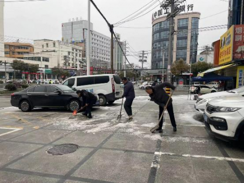 “铲子断了,再拿一个给我!”坚硬的冰层一次次考验除雪党员的力量极限,也是对铲子质量的测试。抛向路旁的冰块越来越多,在党员突击队的带领下,队员们不断艰难尝试。“铲完了,快进去休息休息!”经过连日铲雪奋战后,道路终于可以平安顺利通车。片区负责人立即组织队员们进室内休息。以冰雪为令,县局党员干部全力做好风险排查、预警预案、组织协调、应急处置等工作,努力将各类损失降到最低。