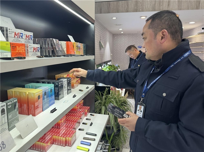 图为安吉县烟草专卖局组织开展电子烟专项检查。潘洋洋摄