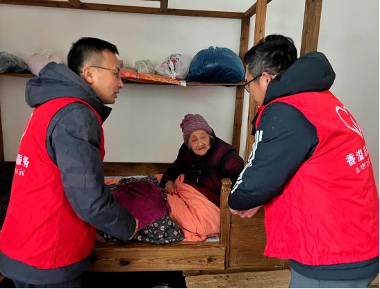“奶奶,最近天气冷,您要注意保暖,多穿点……”志愿者老李嘱托到。