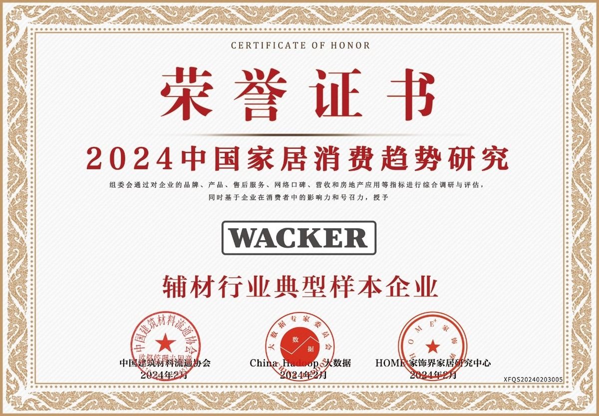 2月29日,备受关注的“2024中国家居消费趋势研究暨行业典型样本企业发布”成果发布,瓦克密封胶凭借近年来的出色表现及优异的消费者口碑再次荣获“辅材行业高质量发展品牌”“消费者喜爱的厨卫防霉品牌”“消费者喜爱的美容美缝品牌”“消费者喜爱的密封胶品牌” 4项荣誉。同时,瓦克中国被2024中国家居消费趋势研究组委会授予“辅材行业典型样本企业”荣誉。