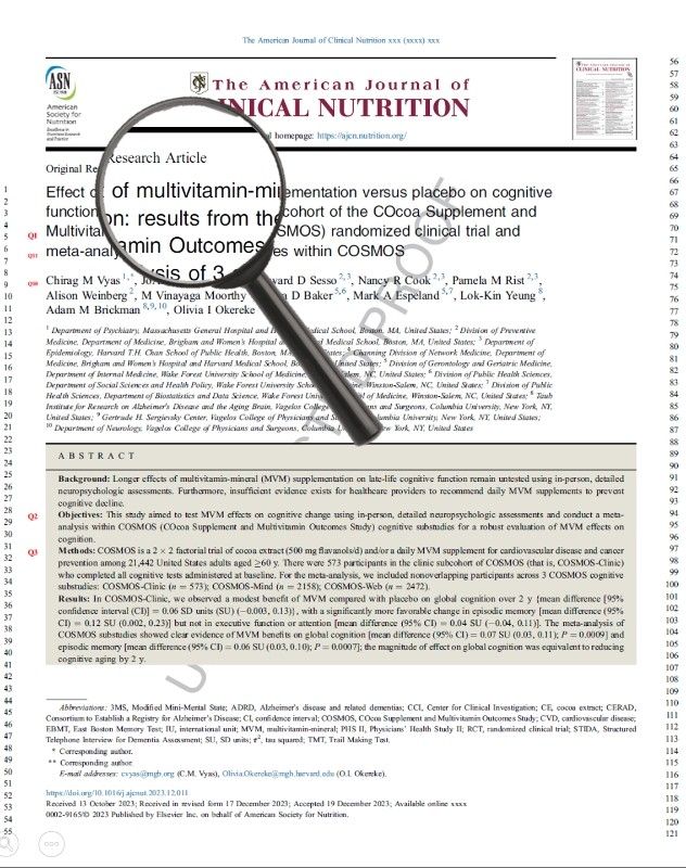 COSMOS-Clinic再添力证 复合维生素减少情景记忆衰老