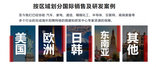 同时,通过国际业务线专业化布局,设立不同海外地区的专业服务团队,确保对接客户的专业度和职业的精准把控。致力于成为企业人力资源领域持续、可靠的合作伙伴。