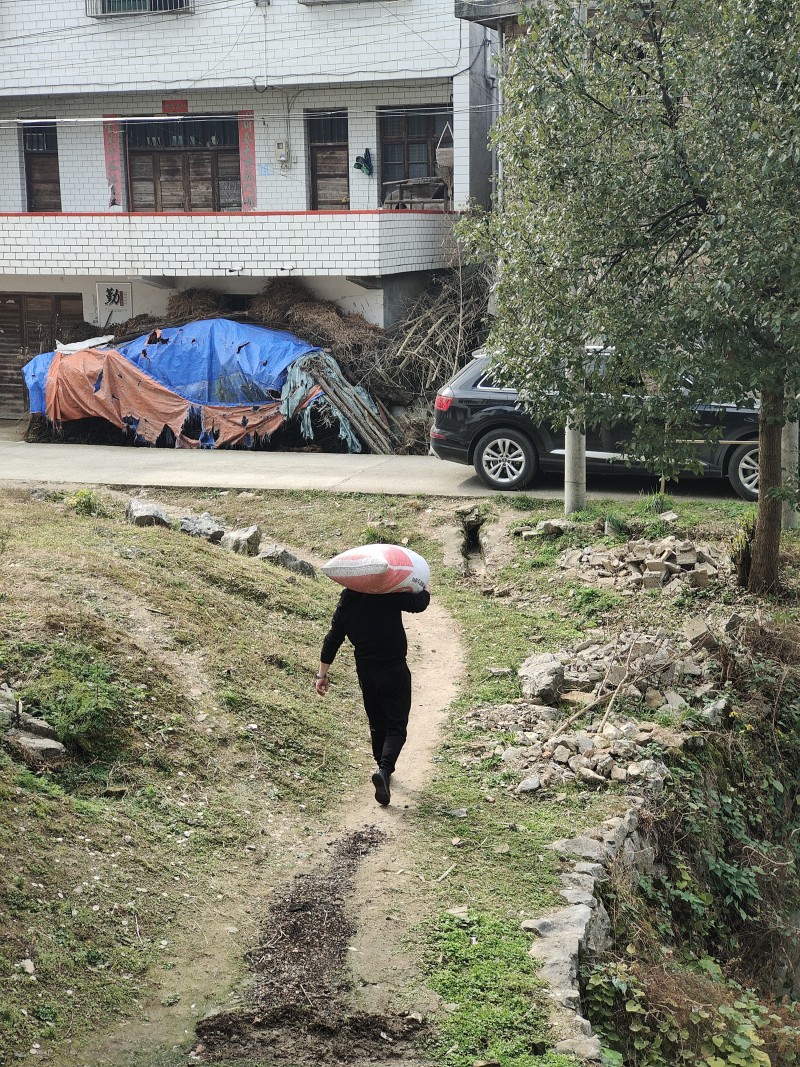 一次吃完午饭后,辉哥开着车准备带我去彭大妈家。路上正巧遇见了务农完准备归家的彭大妈,辉哥打过招呼便让彭大妈上车一起回去。“队长,我就不坐车了,鞋子都是泥巴,莫把你车弄脏了!反正没多远路了,走一下就到了!”彭大妈站在路旁,脸上露出一副不好意思的神情。“你就上车吧,车就是用来坐的!没什么脏不脏的!”彭大妈见推说不掉,只好上了车。到了彭大妈家后,彭大妈领着我们去了侧屋,三大袋的花生矗立在水泥地上。原来彭大妈是辉哥的结对帮扶对象,尽管公司在村里开展消费帮扶收购了一些花生,但家中还有两三百斤的花生没有销路。于是便向辉哥再次寻求帮助。辉哥检查了袋中花生的情况:“彭大妈,这样,这些花生我帮你收走好了!”“那就太感谢队长了!”彭大妈脸上扬起了笑容。辉哥扛起一袋花生径直往外走,我撸起袖子也想帮忙扛一袋,花生仍在地上“无动于衷”。返回来的辉哥看到我正在和一袋花生较劲,立马从我手中搬走了花生“小刘啊,这个一袋七八十斤你扛不动的,我搬就行了!”尽管辉哥扛着数十斤重的花生,但走起路来依旧风风火火。我跟在辉哥的背后,望着前方的背影在秋日柔和的光照下显得格外高大。听村里干部说,辉哥已经自掏腰包收了一千余斤。“贴心”是辉哥的第三印象。