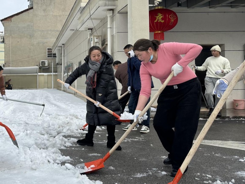 (聂华和单位干部职工共同铲冰除雪 郑静摄)