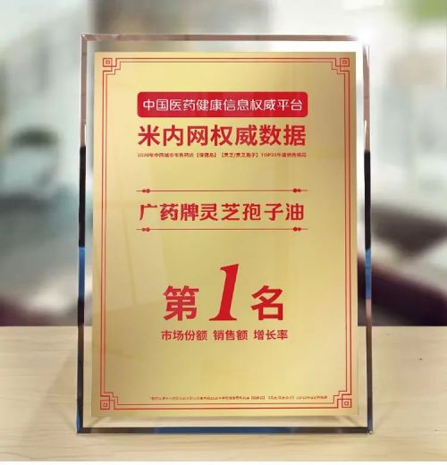 ▲广药牌灵芝孢子油获评城市零售药店灵芝/灵芝孢子品类市场份额、销售额、增长率三个第一