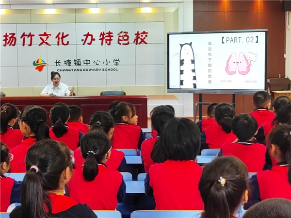 “今天小沈老师又来看我们了!她告诉我们要远离‘奶茶杯’‘萌虎杯’,虽然很好看,但是会让我们生病的……”在长塘镇中心小学,刚参加完讲座的一名男生兴致勃勃地和他的朋友介绍道。