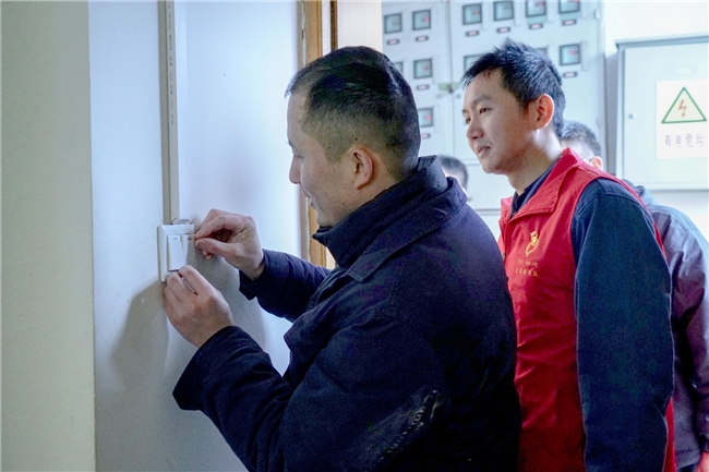 图为青年志愿者在职工公寓更换废旧开关