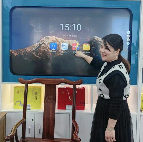 图为林丽斌介绍自己用智慧大屏经营及服务顾客。王丹丹供图