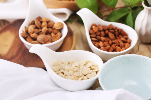 在健康作用方面,山杏仁表现出镇咳平喘、抗氧化、保护心血管健康、调节机体代谢、抗肿瘤、抗炎、抗菌 / 抗病毒、调节肠道菌群等多种功效。例如,苦杏仁中的苦杏仁苷在体内分解后产生的氢氰酸对呼吸中枢具有一定抑制作用,能舒张支气管平滑肌,减轻咳喘症状。同时,山杏仁中含有的多酚、黄酮、番茄红素类等抗氧化成分,能够清除体内自由基,提高抗氧化能力。此外,研究表明山杏仁可能具有预防和保护心血管健康的作用,能降低总胆固醇、低密度脂蛋白胆固醇和甘油三酯的水平,增加高密度脂蛋白胆固醇水平,改善血压相关指标等。