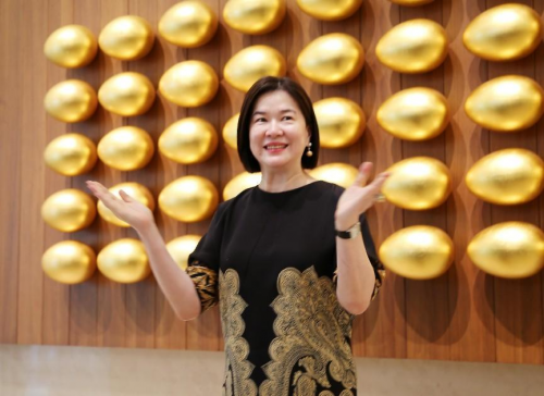 吉时一到,震旦集团创办人陈永泰将金蛋传递给董事长袁蕙华,由董事长袁蕙华在同仁们的殷切注视下庄重悬挂第60颗金蛋,象征着震旦正式迈入第60年。